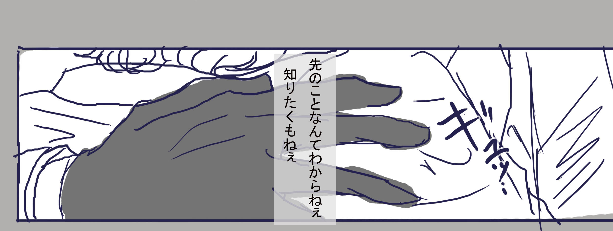 必死に耐えて受け入れている。抵抗しまいとジョーのシャツを掴み握りしめて。